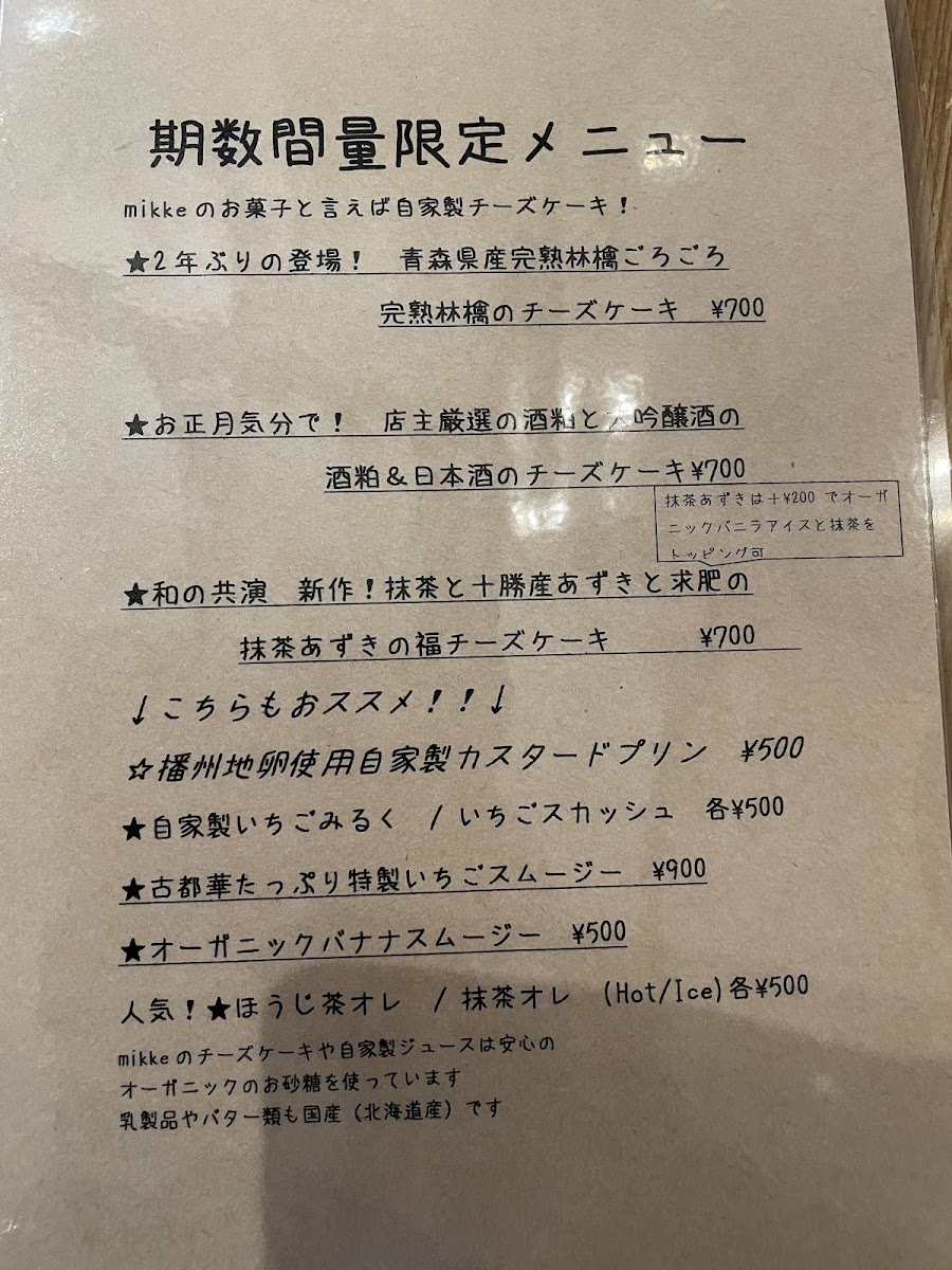 Welcome to cafe mikke Dolce amo, a delightful cafe nestled in the heart of Joto Ward, Osaka. Specializing in exquisite cheesecakes, this cafe impresses with its monthly rotating flavors, featuring seasonal ingredients sourced from local farms. Patrons rave about the rich combinations, such as the perfectly balanced sweet potato cheesecake and the ever-popular apple-infused version, both of which showcase a generous mix of chunky fruit.